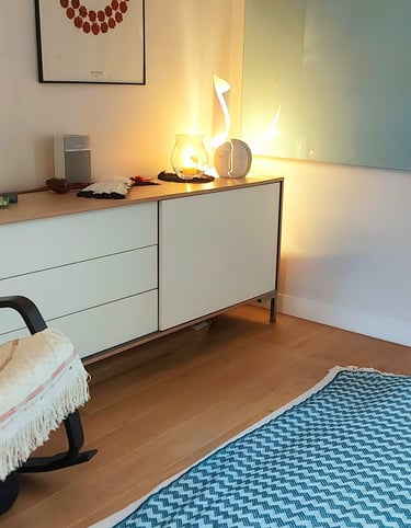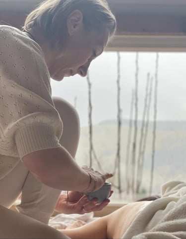 La pratique des soins se déroule au sol, dans un espace calme et apaisant. Le patient est confortablement installé sur un matelas, bien couvert, afin de favoriser une détente profonde.